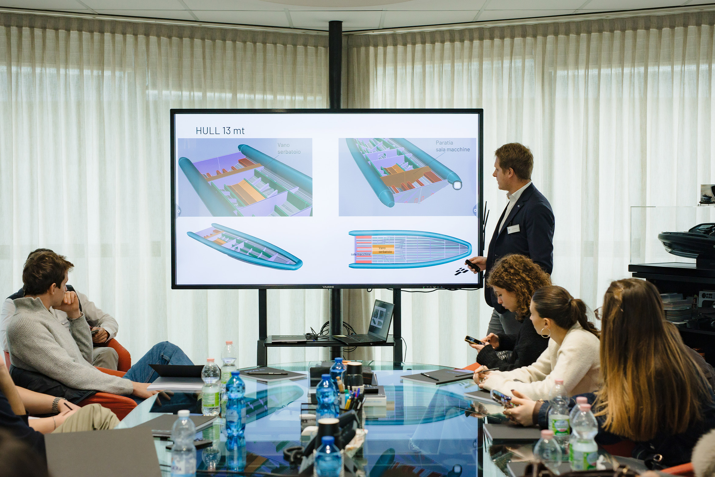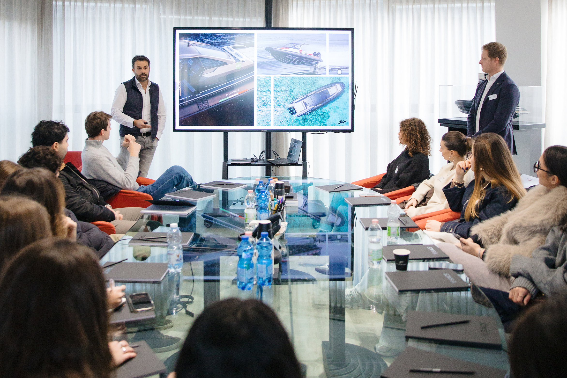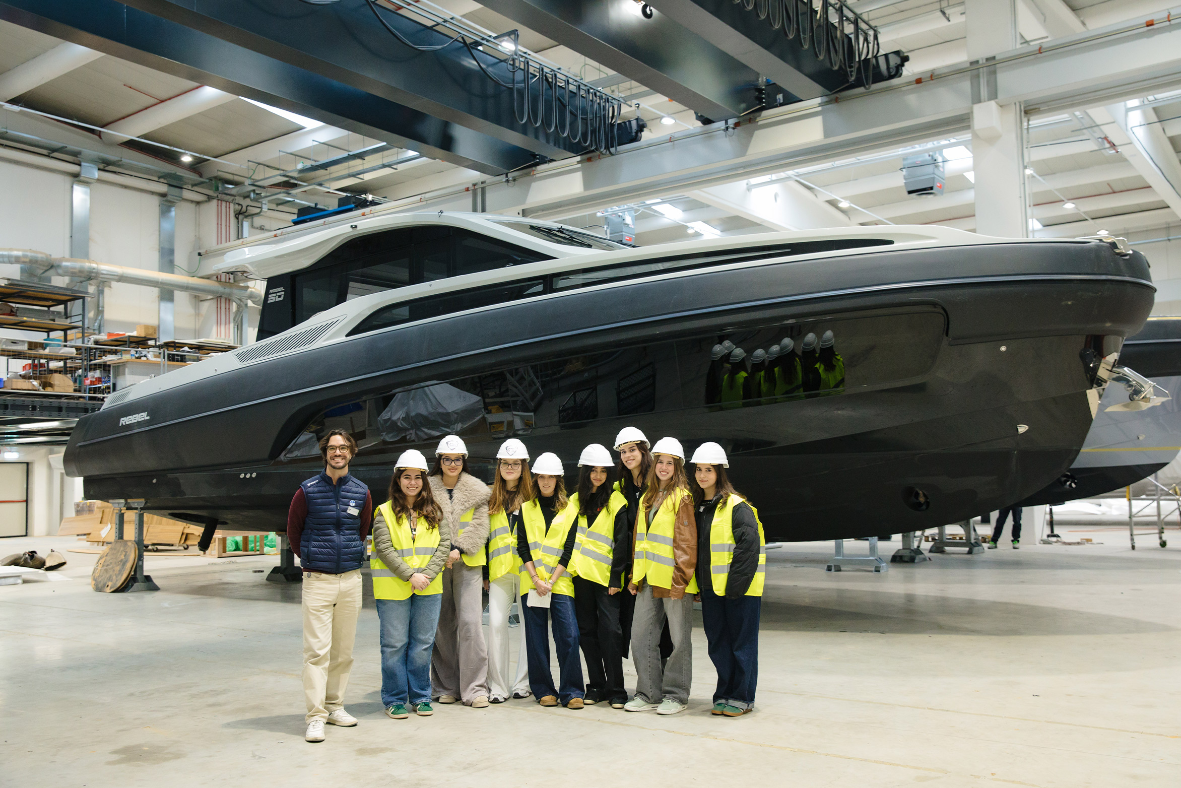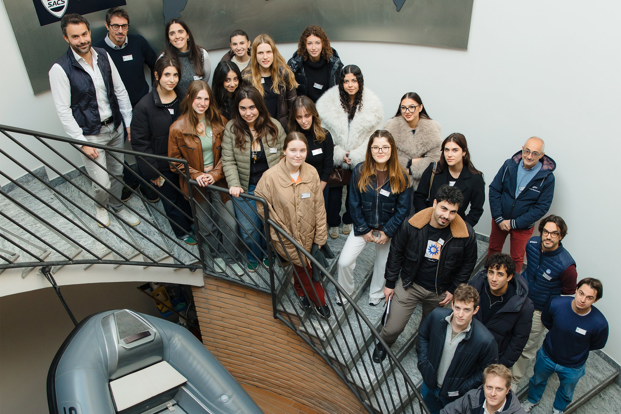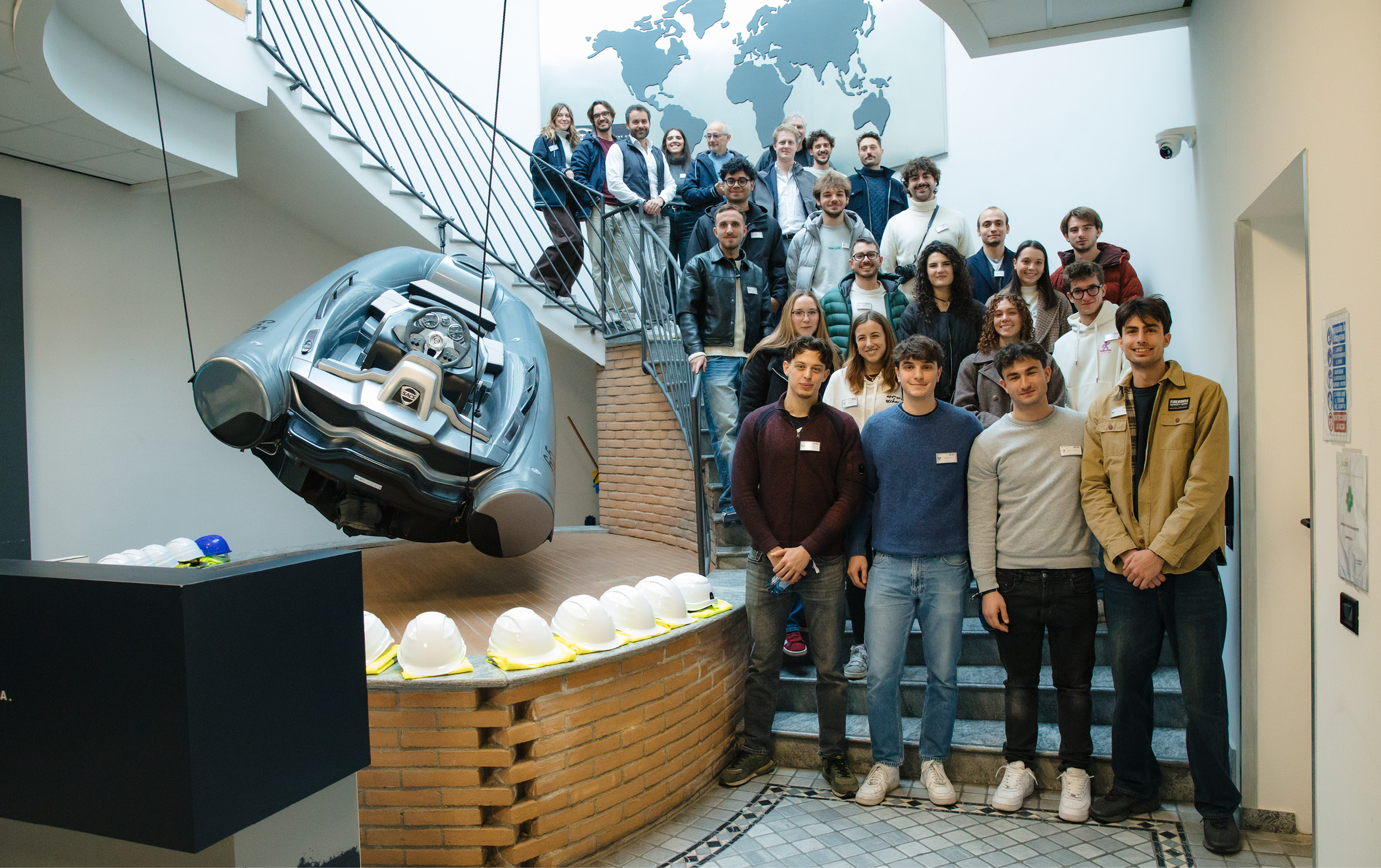 Il percorso è iniziato ufficialmente con una giornata presso la sede SACS Tecnorib, durante la quale gli studenti del corso di Product Design hanno ricevuto il brief di tesi e visitato i reparti di progettazione e produzione dell’azienda. Un’occasione per entrare in contatto diretto con i valori, i processi e l’approccio ingegneristico che guidano lo sviluppo delle imbarcazioni SACS Tecnorib.