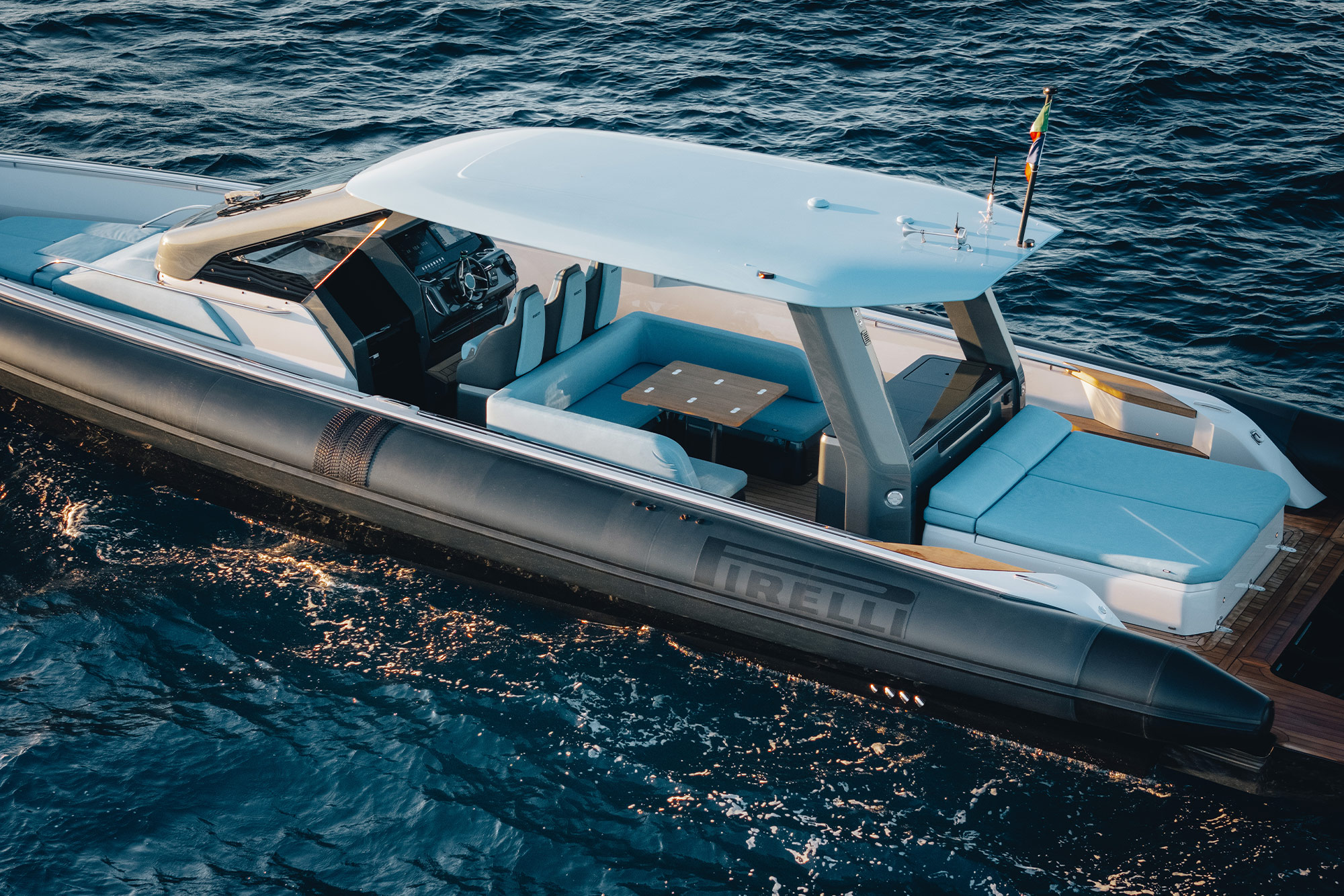 The new PIRELLI 47 captured attention with its innovative walkaround concept, available in two versions (open and closed) and featuring four different aft configurations. Its next-generation hard top, refined interiors, and perfect balance of style, comfort, and performance make it an ideal choice for owners seeking versatility and control while cruising.