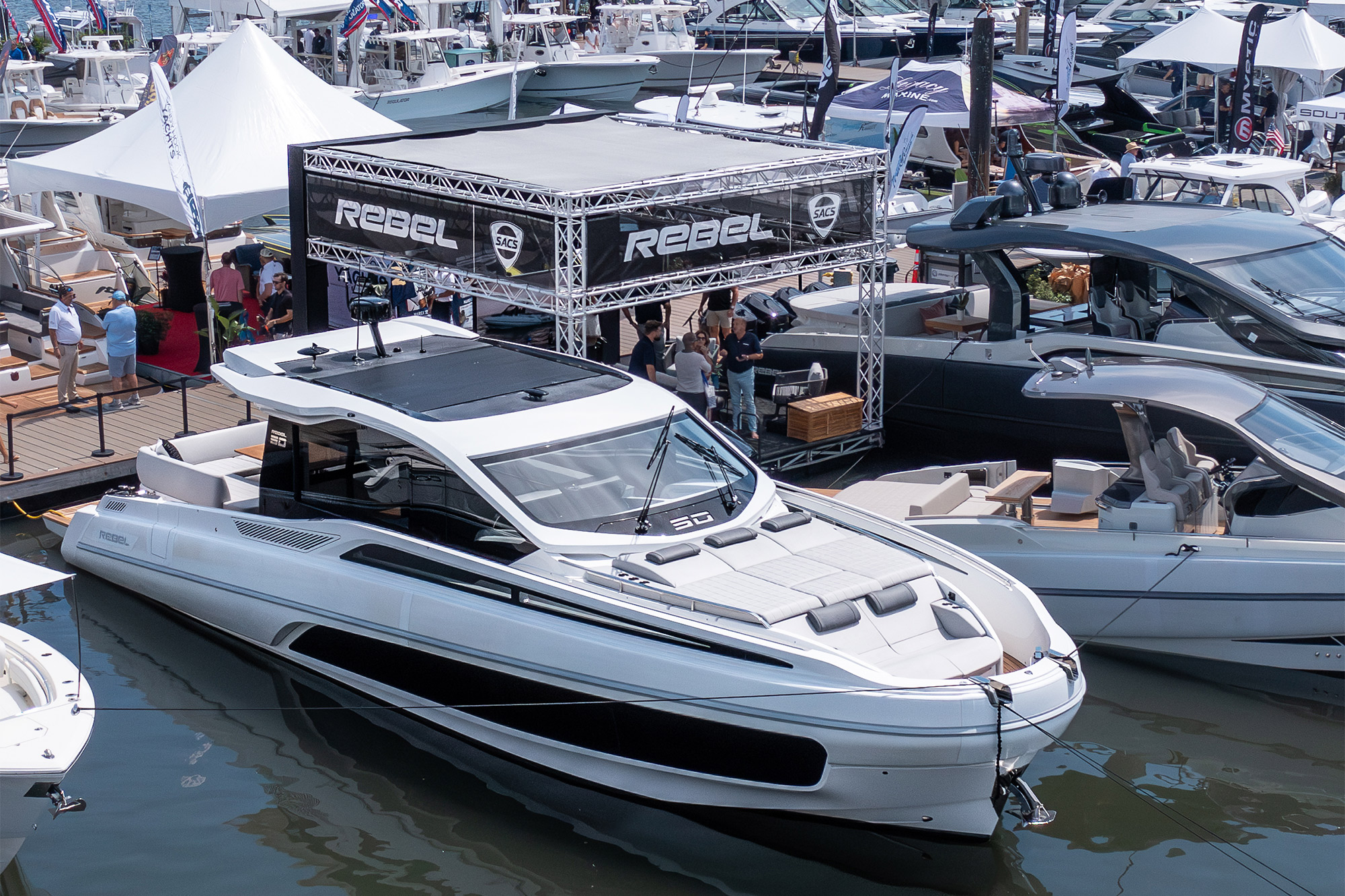 The Rebel range was the star of the event, embodying SACS Tecnorib’s innovative spirit and representing a segment that has redefined the standards of contemporary boating. The models on display – Rebel 40, Rebel 50 G, and Rebel 55 – captured the attention of owners, industry professionals, and enthusiasts alike, thanks to their ability to combine performance, comfort, and distinctive design.